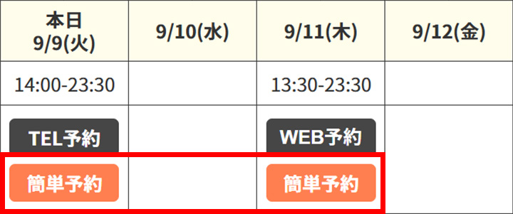 その点、【簡単予約】なら弊社システム連動による自動更新のため、リアルタイムで正確な空き状況がご確認いただけます。